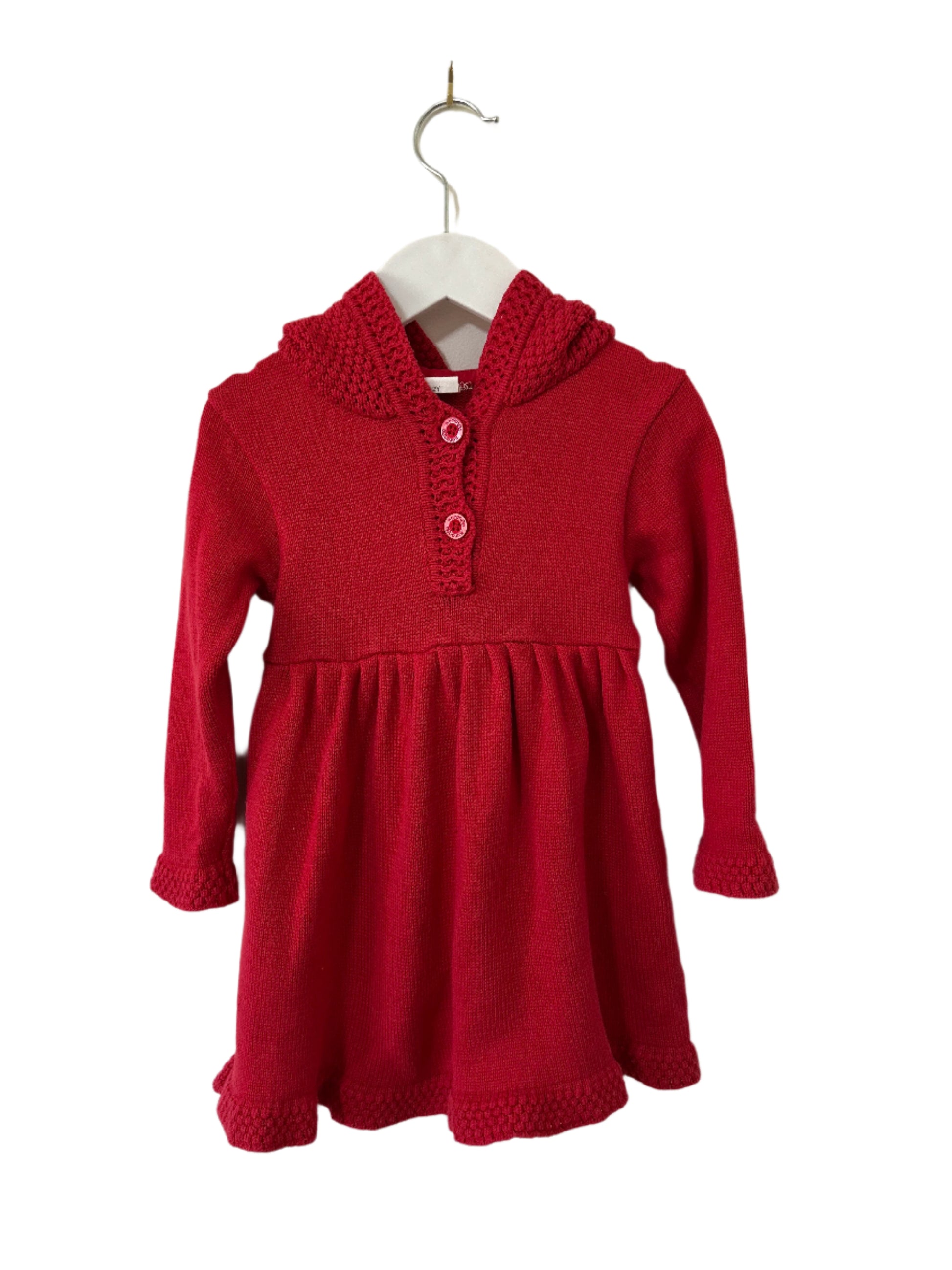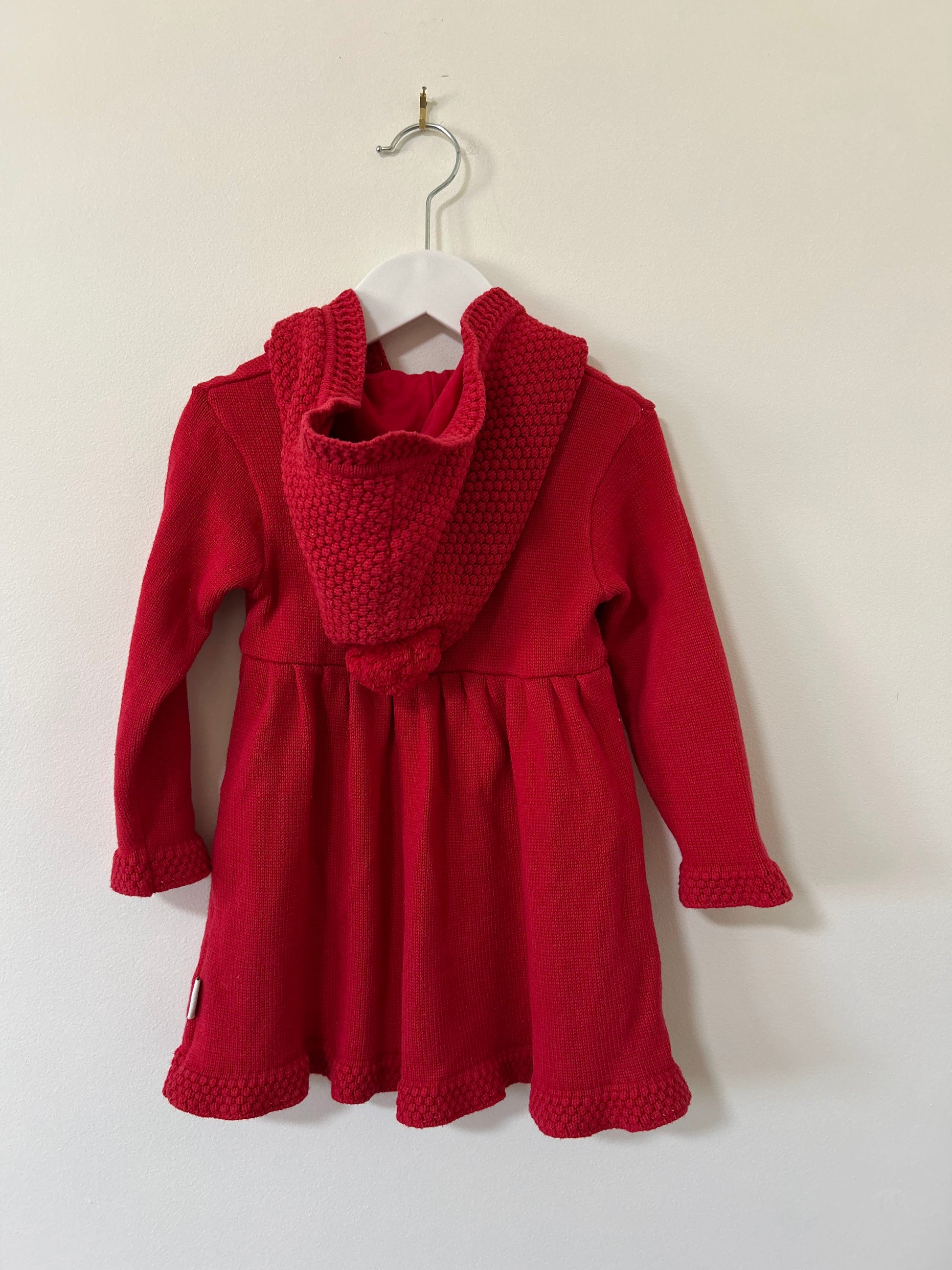Stay warm and stylish in Korango's adorable Little Red Knit Dress. Crafted from 100% cotton knit, it features a hood with pom pom for extra cuteness. Finished with popcorn knit trims and two buttons at the front for easy dressing, this must-have winter piece is perfect for all of her adventures! |